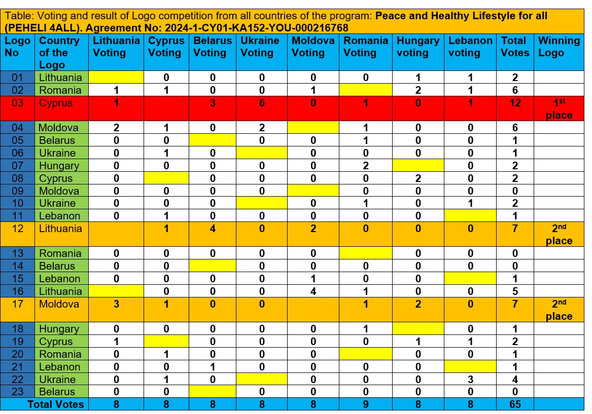 The period from the 26th of March till the 1st of April 2025 was the voting period. All participants of the project voted, and the results were sent to the coordinator (received all the results till 1st of April) who concentrated them in the following table.